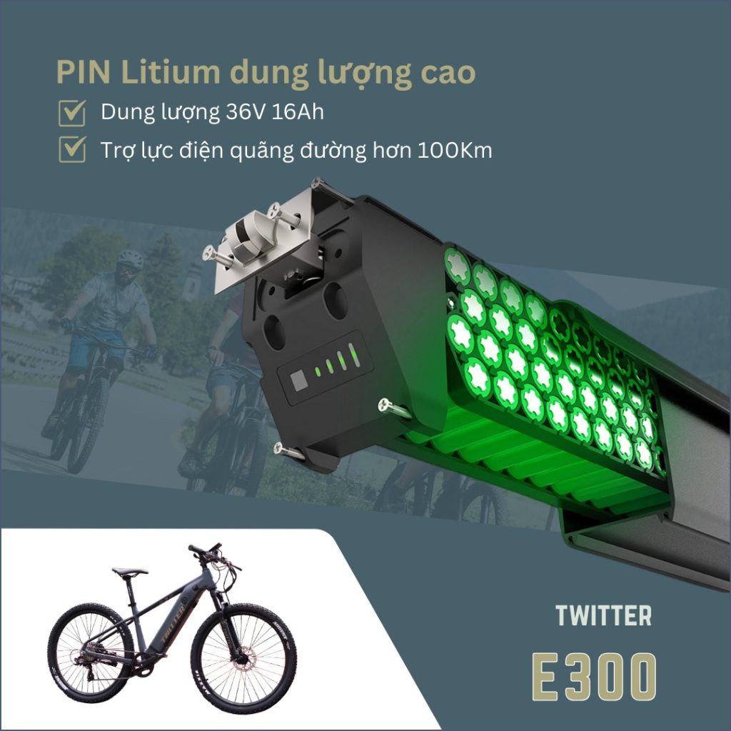 - Pin Lithium 36V 16Ah: Trợ lực điện quãng đường lên đến 150km